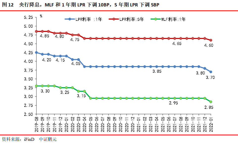 1月20日,LPR下調。1年期LPR報3.70%,前值為3.80%,跟隨MLF下調10BP;5年期以上品種報4.60%,前值為4.65%,僅下調5BP。