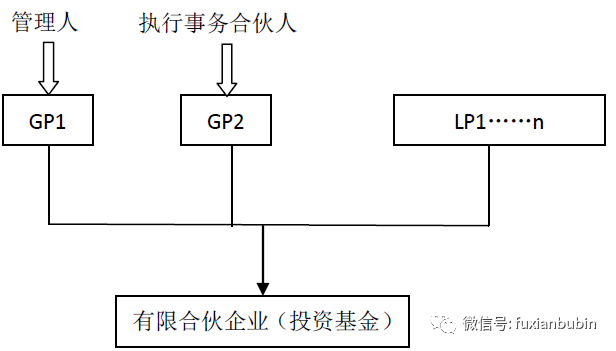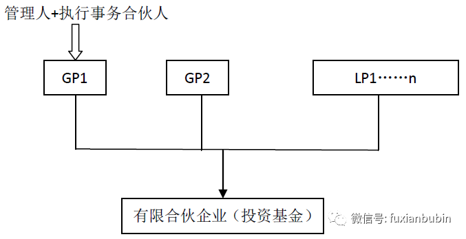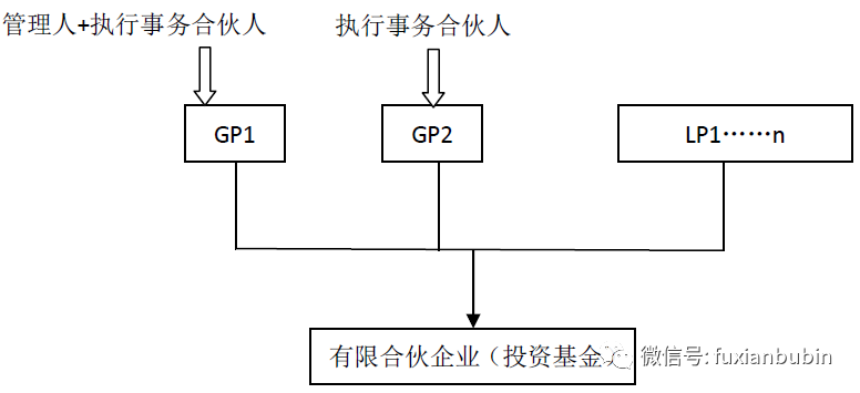 二是一名GP擔(dān)任基金管理人,另一名GP擔(dān)任執(zhí)行事務(wù)合伙人但不具有基金管理人資格。其結(jié)構(gòu)如圖所示: