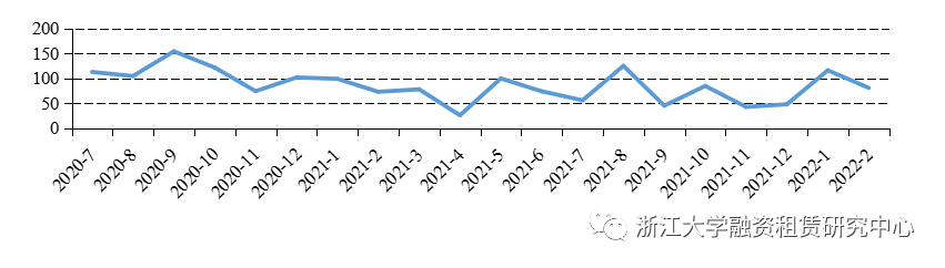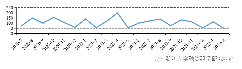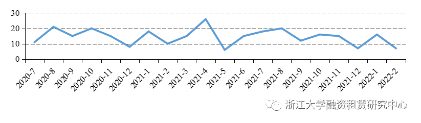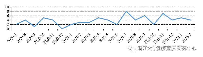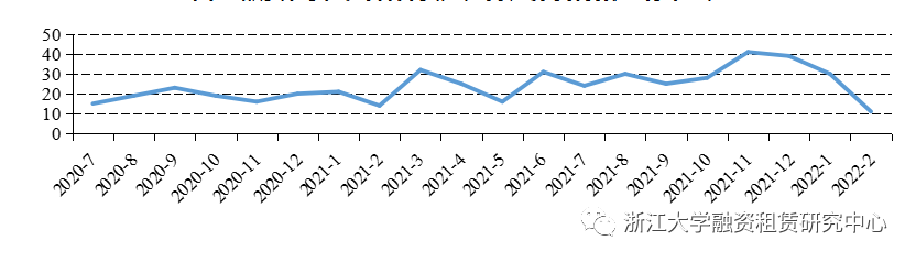 圖1融資租賃公司各月資產支持證券發行數量統計(支)