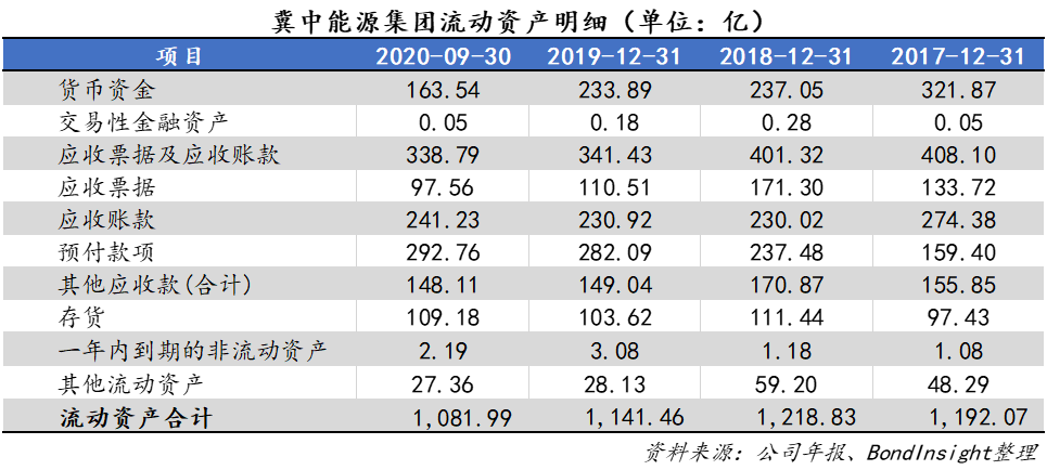 自2020年7月份,公司在9個月內累計兌付61只債券本息647億元。債券余額已從去年初的740.6億元降至204.9億元,半年多兌付了500多億元債券,還款意愿較強。從冀中能源集團的自身能力來看,其2020年三季度末賬面貨幣資金26億元,主要依賴地方政府支持才能順利兌付。