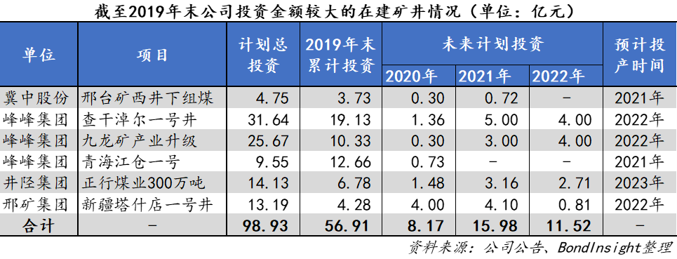 截至2019年末,公司主要在建礦井6座,投入較大的查干淖爾一號井、九龍礦、正行煤業(yè)及新疆塔什店一號井預計投產(chǎn)時間均在2022年之后。項目建成投產(chǎn)后,公司煤炭產(chǎn)能和產(chǎn)量將有所擴大,但公司目前部分礦井剩余服務年限較短,后備資源接續(xù)不足,存在穩(wěn)產(chǎn)期短、發(fā)展后勁不足等問題。