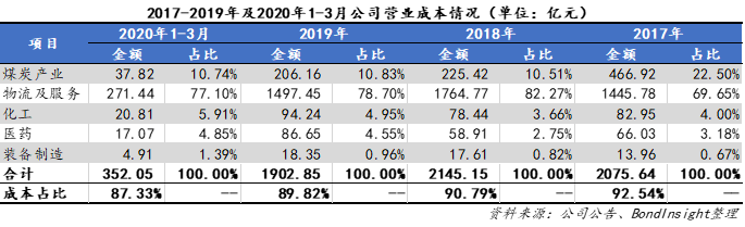 · 基礎煤炭板塊走弱,物流及服務營收不穩(wěn)定,支柱制藥、化工板塊體量較小