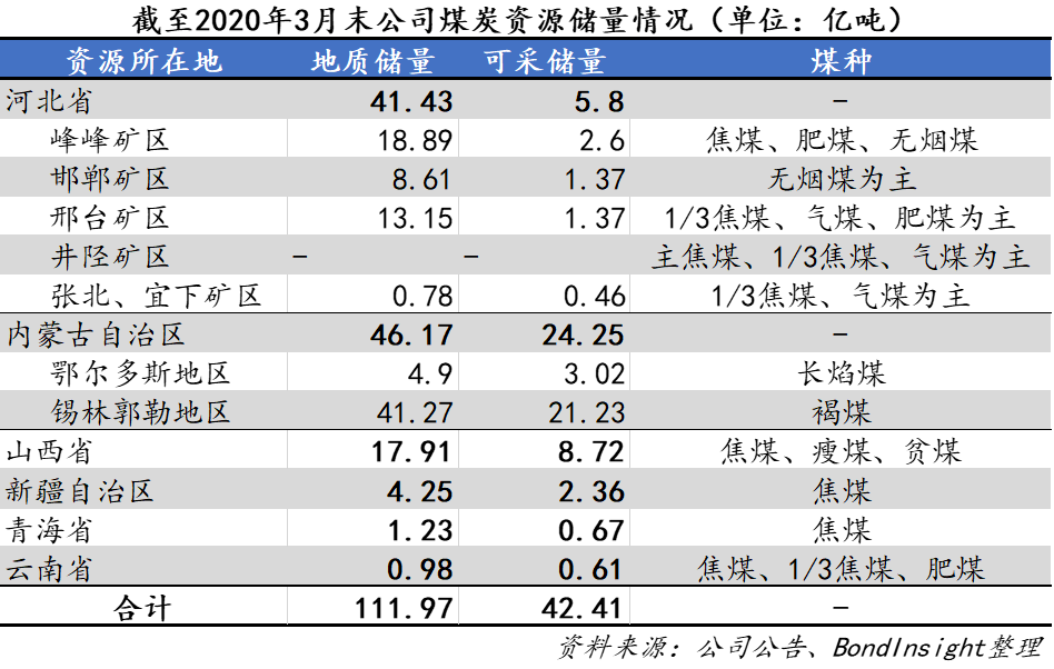 公司是河北省最大的煤炭企業(yè),總部所處礦區(qū)為國家重點建設的大型煤炭基地,但河北省有效可采儲量逐年減少,截至2020年3月末河北省可采儲量合計僅余5.8億噸,未來將較依賴外省資源。內蒙古及山西產(chǎn)區(qū)可采儲量較多,分別為24.25億噸及8.72億噸,但內蒙古產(chǎn)區(qū)主要煤炭種類為長焰煤及褐煤,不同于公司主要煤種焦煤,預計在一定程度上拉低其整體毛利率。