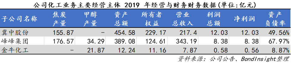 公司化工業(yè)務包括煤化工和非煤化工兩大類。煤化工業(yè)務主要由子公司冀中股份、峰峰集團和金牛化工負責生產(chǎn)經(jīng)營,主要產(chǎn)品為焦炭和甲醇;非煤化工業(yè)務主要由子公司滄州聚隆化工有限公司(以下簡稱“聚隆化工”)負責生產(chǎn)經(jīng)營,主要產(chǎn)品為燒堿、PVC等。