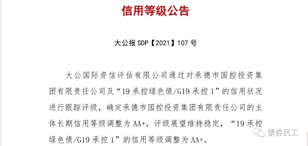 1、承德國控主體評(píng)級(jí)上調(diào)至AA+