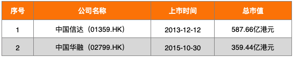 截至2021年2月,中國共有已上市AMC 2家,均為全國性AMC且都在港交所上市。