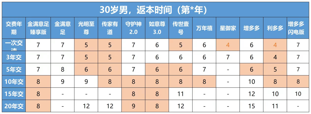 如果是3年交、5年交,那么利多多增額壽險(xiǎn)、光明至尊、傳家有道、傳世壹號(hào),都是回本較快的,4、5年它們的現(xiàn)金價(jià)值就能超過(guò)已交保費(fèi)。