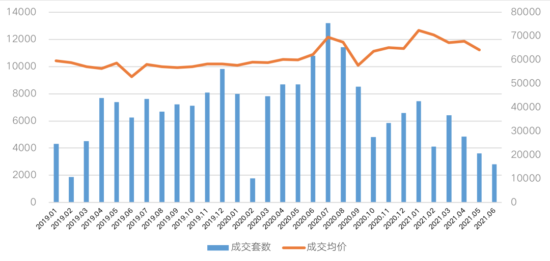 圖:2019年1月-2021年6月深圳二手住宅成交量價