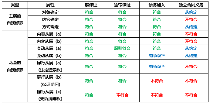 關(guān)于從屬性的界定,有許多學(xué)者提出了不同的看法。在我看來,最有助于區(qū)分增信類型的,是下面的幾個特征: