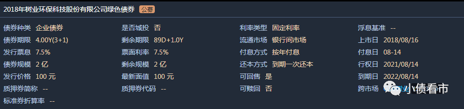 《小債看市》統(tǒng)計(jì),目前樹業(yè)環(huán)保僅存續(xù)1只綠色債券“18樹業(yè)環(huán)保綠色債”,存續(xù)規(guī)模兩億元,將于今年8月14日回售,明年8月14日到期。