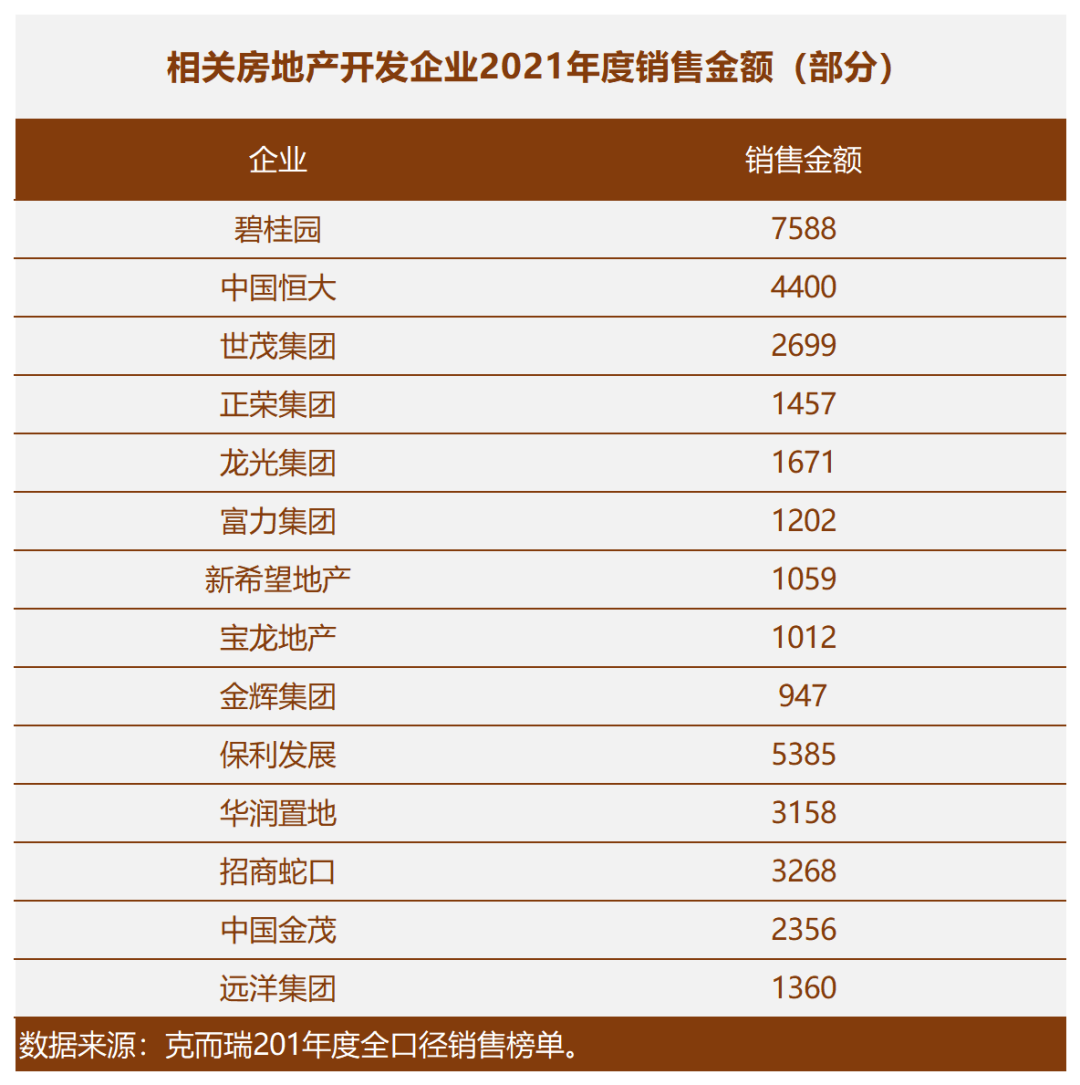 2021年,克而瑞全口徑銷售排名為:中南建設1965億元(No.17)、陽光城1838億元(NO.19)、禹洲集團1050億元(No.40)。