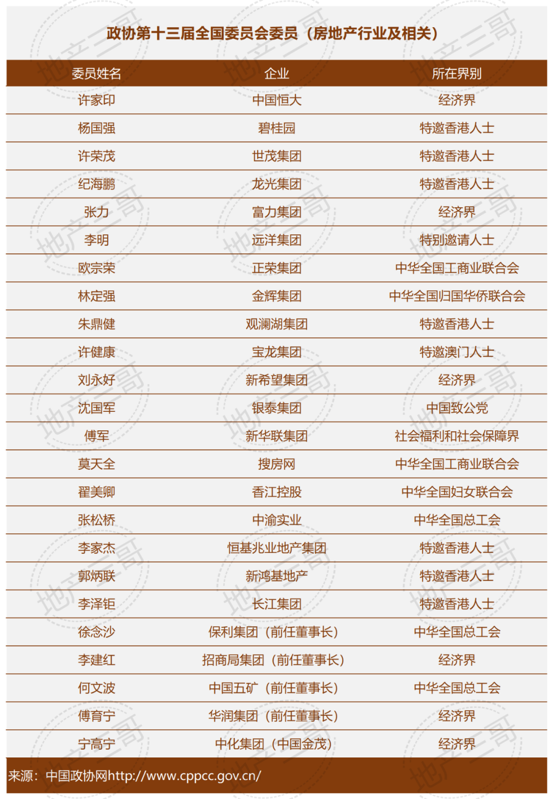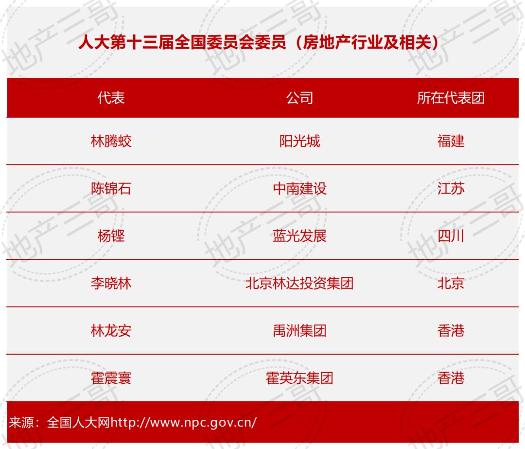 在參加全國“兩會”的代表和委員名單中,有哪些是來自于房地產企業的呢?