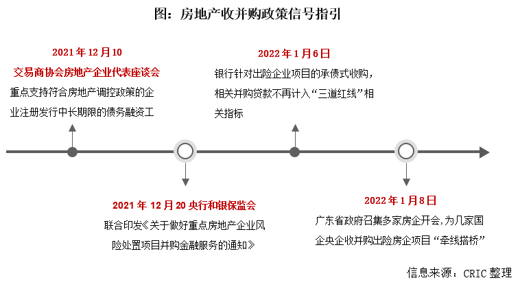 在行業(yè)流動性緊張、債務危機頻發(fā)的背景下,2021年12月10日,央行、銀保監(jiān)會出臺《關于做好重點房地產(chǎn)企業(yè)風險處置項目并購金融服務的通知》,打通并購融資通道,支持優(yōu)質房企兼并收購出險和困難的大型房企的優(yōu)質項目。