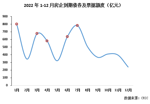 另一方面,2022年上半年行業(yè)償債仍處于高峰期。根據(jù)克而瑞對行業(yè)100家典型房企償債壓力監(jiān)測發(fā)現(xiàn),2022年僅境內(nèi)外債券、票據(jù)到期額度逾6000億元,其中1、3、4、6、7月到期額度均處于高位區(qū),整體來看特別是上半年集中到期債務多,不少房企面臨較大償債壓力。