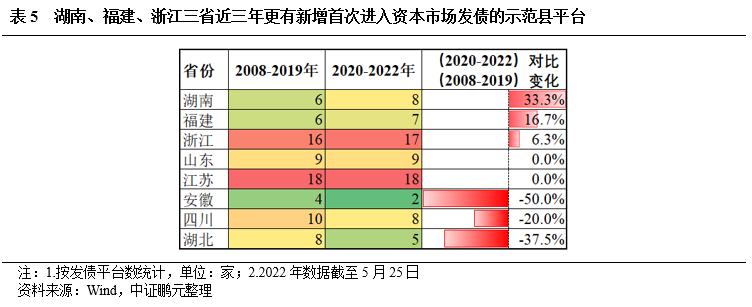 1.甘肅、海南、內(nèi)蒙古、山西、陜西五省,歷史上從未有示范縣平臺(tái)發(fā)過(guò)債的,或與縣級(jí)經(jīng)濟(jì)較弱、平臺(tái)資質(zhì)較差、金融資源偏少等相關(guān)。