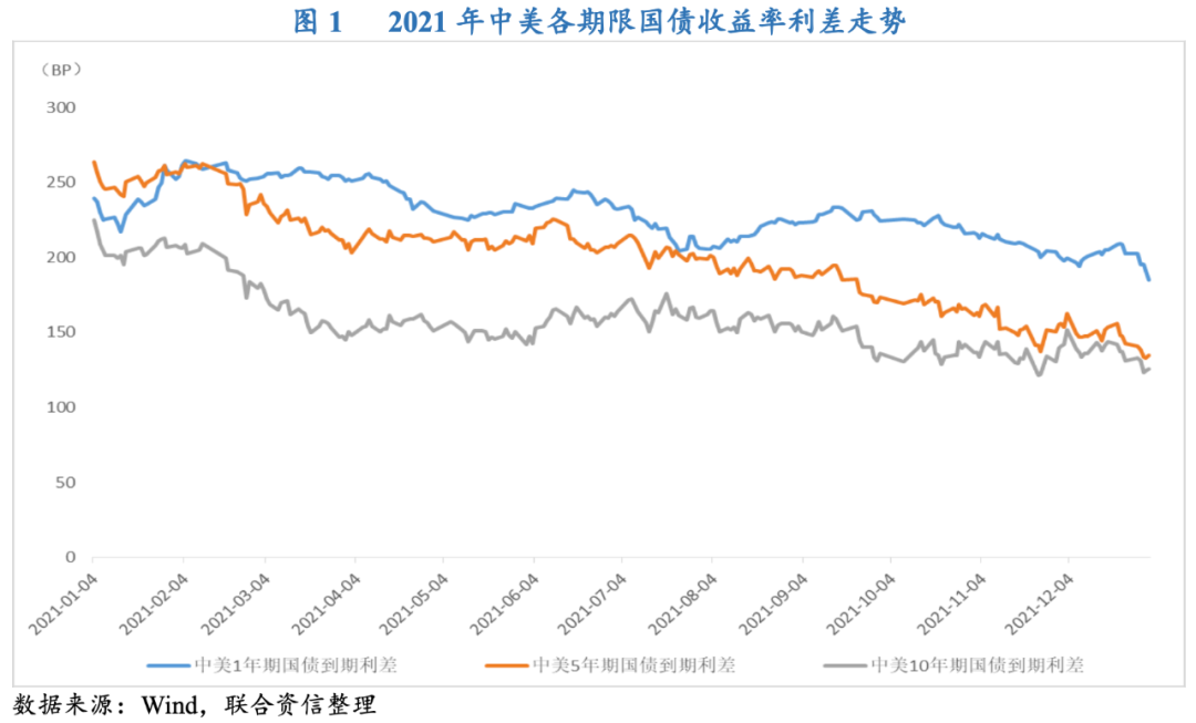 美聯儲加速收緊貨幣政策且可能多次加息的市場預期將繼續推升美債收益率,而中國穩健的貨幣政策或趨向寬松,中美貨幣政策方向背離預計將使中美國債收益率利差保持當前收窄趨勢,并進一步減弱美元融資的相對成本優勢