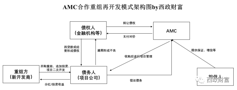 3. 重組方負責項目后續的開發及運營,以項目開發收益作為首要的還款來源,并根據項目實際情況由擔保人向AMC提供無限連帶責任擔保。