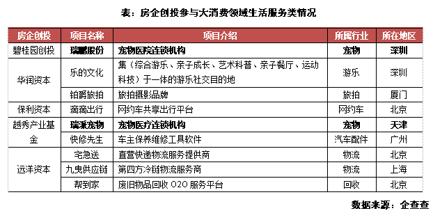 從生活服務相關的品牌來看,寵物經濟受到重視,如碧桂園創投參與投資的瑞鵬股份,以及越秀產業基金參與投資的瑞派寵物;此外還包括有室內游樂、旅拍、物流等等都是房企資本的關注重點。