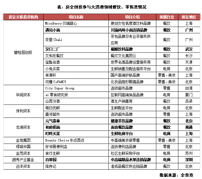 不少有房企背景的投資機構將投資目光放到了大消費、新消費領域,以尋求地產業務外的多元化發展。