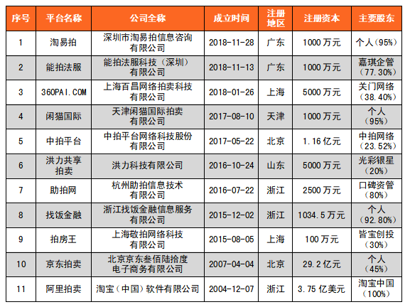 司法拍賣類平臺約有11個,平臺通過網絡電子競價方式公開處置不良資產,具有擴大競拍參與機會、降低流拍率等優勢。阿里拍賣與京東拍賣早已入局,借助其綜合電商平臺優勢開展不良資產司法拍賣服務,并于2016年11月25納入最高人民法院司法拍賣網絡服務提供者名單庫。