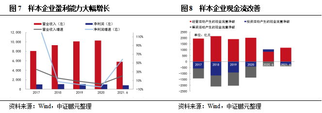 四、上半年樣本企業(yè)收入及利潤大幅增長,經(jīng)營性現(xiàn)金流改善,償債壓力邊際改善