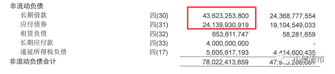 除此之外,新城控股還有780.22億非流動負(fù)債,主要為長期借款和應(yīng)付債券,其長期有息負(fù)債合計(jì)677.63億元。