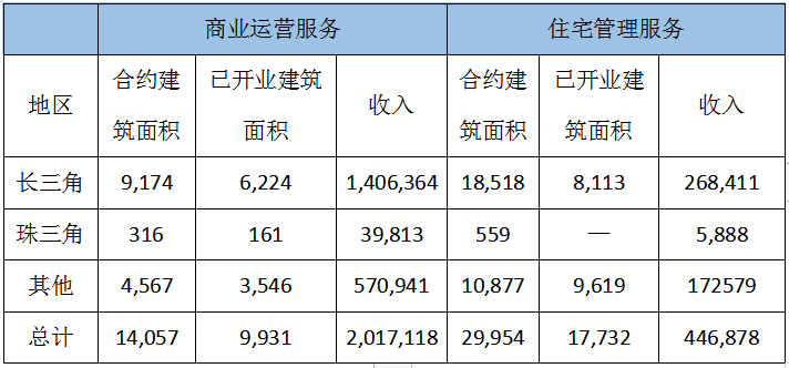 截至2021年12月31日,寶龍商業(yè)的商業(yè)運(yùn)營服務(wù)已開業(yè)建筑面積約為990萬平方米,按年上升約130萬平方米,同比增長15.12%;已開業(yè)項(xiàng)目數(shù)88個,較2020年同期68個新增20個;合約建筑面積約為1410萬平方米,較2020年同期增加280萬平方米。住宅物業(yè)管理服務(wù)的已交付建筑面積約為1770萬平方米,按年上升約330萬平方米。分區(qū)域來看,主要增長來源于長三角地區(qū),這與其公司戰(zhàn)略及定位密不可分。