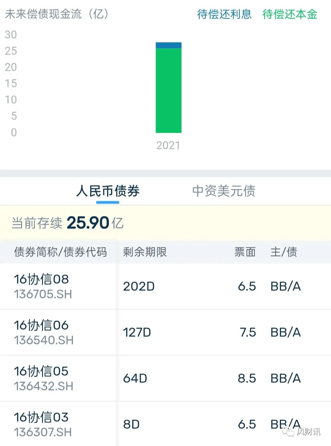風(fēng)財(cái)訊曾在《深度| 起底協(xié)信賣股求生 CDL運(yùn)籌2年入主的前后》中報(bào)道,2020年3月,因逾期兌付,16協(xié)信03、05、06、08停牌1天。彼時(shí)因?yàn)閰f(xié)信質(zhì)押了不少股權(quán)和資產(chǎn)予新加坡城市發(fā)展集團(tuán),準(zhǔn)股東以預(yù)支現(xiàn)金幫其解圍,并帶動(dòng)其他一些質(zhì)權(quán)人松口,以及幾家金融機(jī)構(gòu)幫它養(yǎng)債。