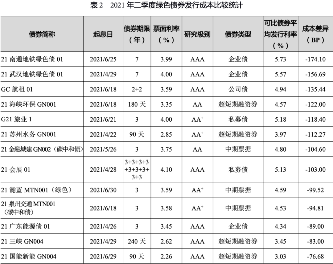 (二)二季度新發綠債發行成本情況