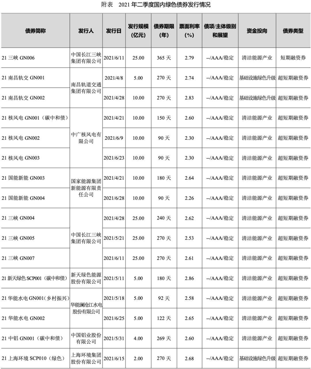 一、二季度綠色債券發行情況