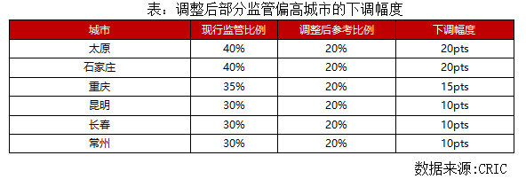 總結:全國性的商品房預售資金監督管理辦法出臺,主要意圖在于政策糾偏,太原、石家莊、重慶、常州等高比例監管城市會出現松綁,釋放出一定流動性,而在這些城市有更多貨值的房企也會享受到明顯的政策紅利。