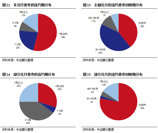 對已完成兌付的債券而言,違約期與回收期一致;對未兌付債券,只有違約期;對部分兌付的債券,則同時存在違約期與回收期。