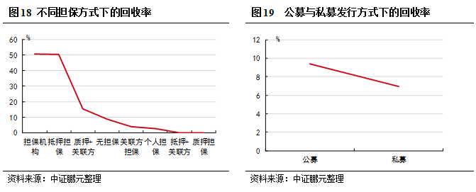 債券發行方式對回收率未有顯著的影響,公募發行債券違約回收率9.38%僅略高于私募發行方式的6.93%。