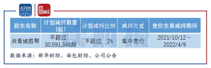 共青城勝幫2019年通過非公開發行獲得公司股份1.18億股,占公司總股本的7.71%,所獲配股份發行價格為10.64元/股,認繳約12.5億元。共青城勝幫擬通過集中競價交易方式,減持公司股份數量不超過3059.13萬股,占其自身所持股份比例約26%。