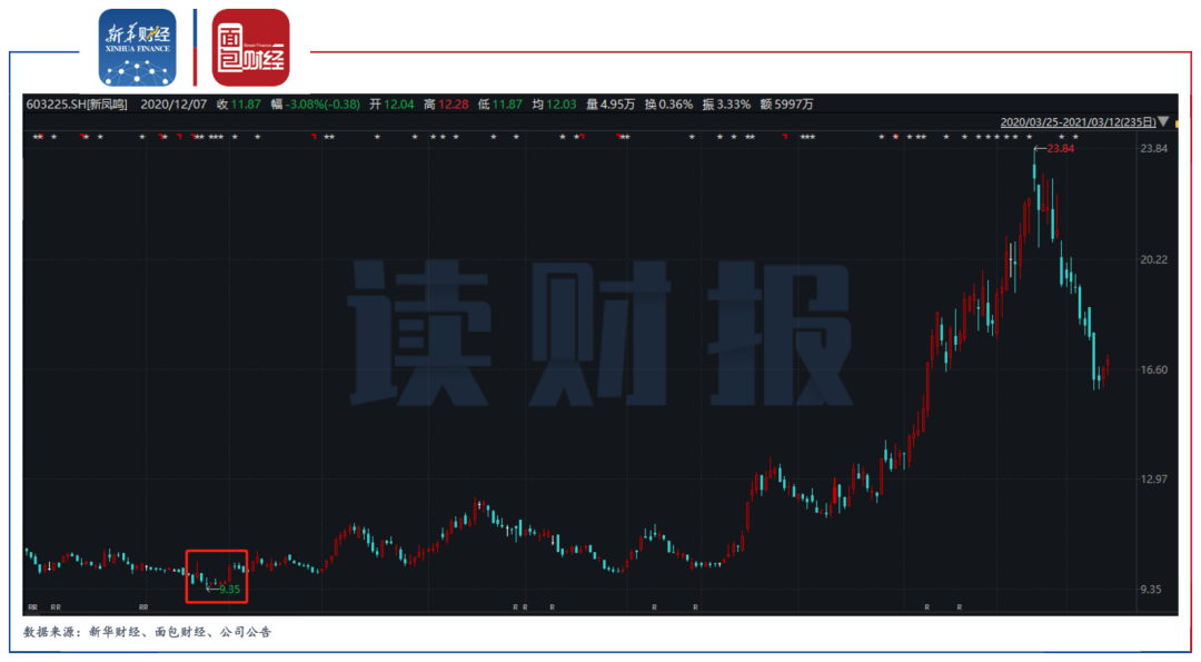 上市公司回購股份計劃往往被市場解讀為利好消息。新鳳鳴發布回購股份公告后的第二個交易日,即2020年5月25日公司股價便止跌,當日盤中最低價9.35元/股(前復權)也成為公司上市至今股價的最低點。在隨后不到一年時間里,公司股價最高上漲至23.84元/股,漲幅近155%。