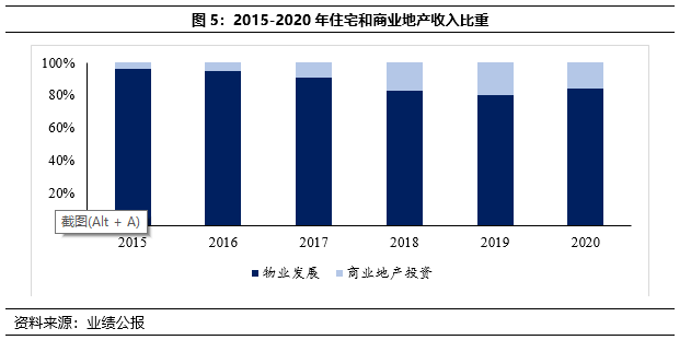 從營收占比上看,依然以房地產(chǎn)銷售為主,近年來隨著商業(yè)地產(chǎn)的不斷投入,商業(yè)地產(chǎn)出租和住宅銷售收入構成中,商業(yè)地產(chǎn)的占比逐年上升。2020年,合生創(chuàng)展實現(xiàn)住宅銷售收入190.75億港元,折合人民幣160.23億元;商業(yè)地產(chǎn)收入36.25億港元,折合人民幣30.45億元(匯率均按照1:0.84)。