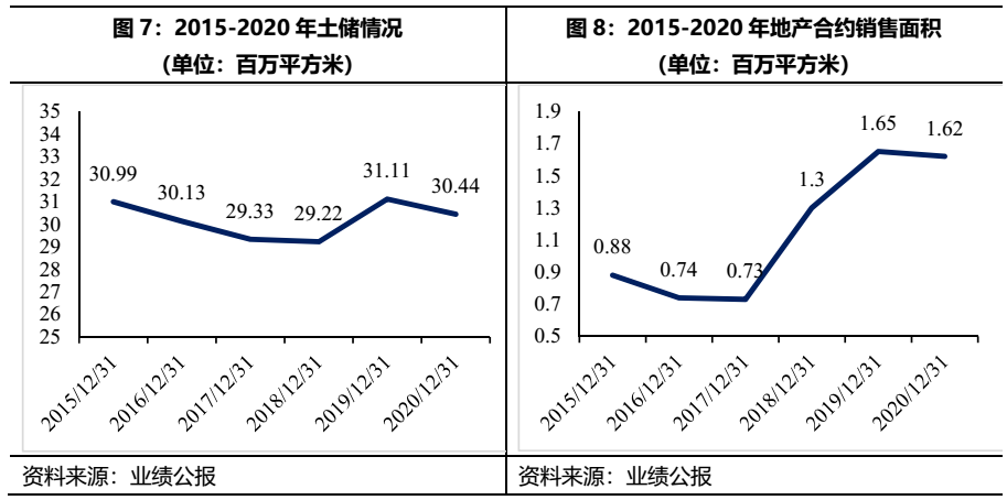 公司每年的總土儲規(guī)模一直維持在3,000萬平方米附近的水平,而與此同時每年的合約銷售面積有所上升。但是按照2020年160萬平方米的銷售面積,相對于3,000萬平方米的總土儲,土地周轉依然很慢,從這個層面上看,目前合生創(chuàng)展地產(chǎn)板塊一貫慢周轉的經(jīng)營風格并沒有發(fā)生本質上的改變,但是銷售去化速度有加快的跡象。