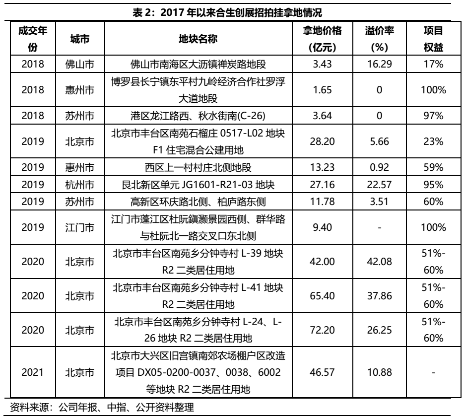 而合生創(chuàng)展則由小女兒朱桔榕接班,2020年1月10日,朱孟依的女兒朱桔榕獲任為董事會主席,正式接班合生創(chuàng)展,因此2020年年報可以算是合生創(chuàng)展二代交接后上交的第一份答卷。自營業(yè)收入規(guī)模上看,新官上任的沖勁十足,2020年合生創(chuàng)展的總營收較上年末同比增加了84.67%,并拿下多個高溢價招拍掛地塊,與朱孟依策略有著180度的轉變。此外,需關注的是,朱桔榕目前僅持股0.09%,需關注后續(xù)仍有二次接班與經(jīng)營策略轉型的可能性。