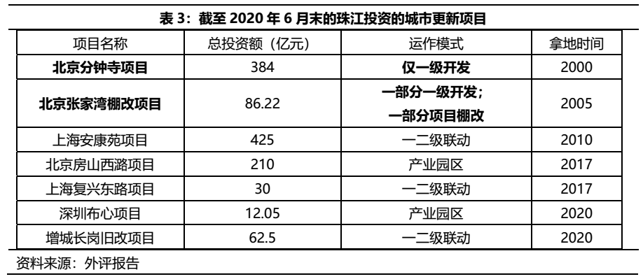 截至2020年6月末,珠江披露的城市更新項目7個,其中僅北京分鐘寺項目和張家灣是僅一級開發(fā),其余均涉及二級建設,張家灣項目上市地塊已經(jīng)收入北京首旅的囊中。從珠江剩余的城市更新儲備來看,似乎珠江和合生之間的“一二級聯(lián)動”可能性較大的項目限于分鐘寺。
