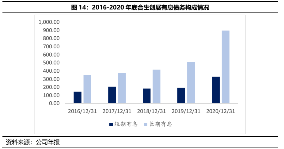 雖然相關監(jiān)管指標尚可,但是隨著近年來公司加快周轉、擴大業(yè)務版圖,有息債務規(guī)模持續(xù)攀升。主要由于長期債務規(guī)模的的擴大,截至2020年末,合生的有息債務達到1,227.13億元,較上年末同比增長了75%。