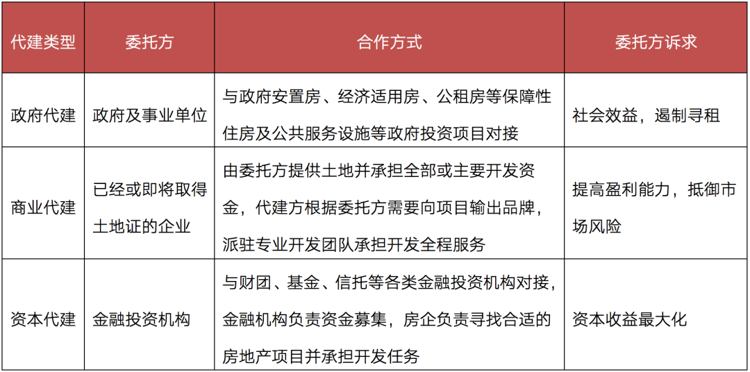 代建業(yè)務(wù)實質(zhì)是屬于輕資產(chǎn)運營,代建企業(yè)的操盤管理能力以及品牌口碑是關(guān)鍵。整體來看,目前房企代建可分為三大主流模式。