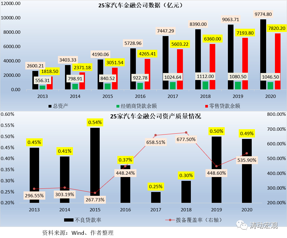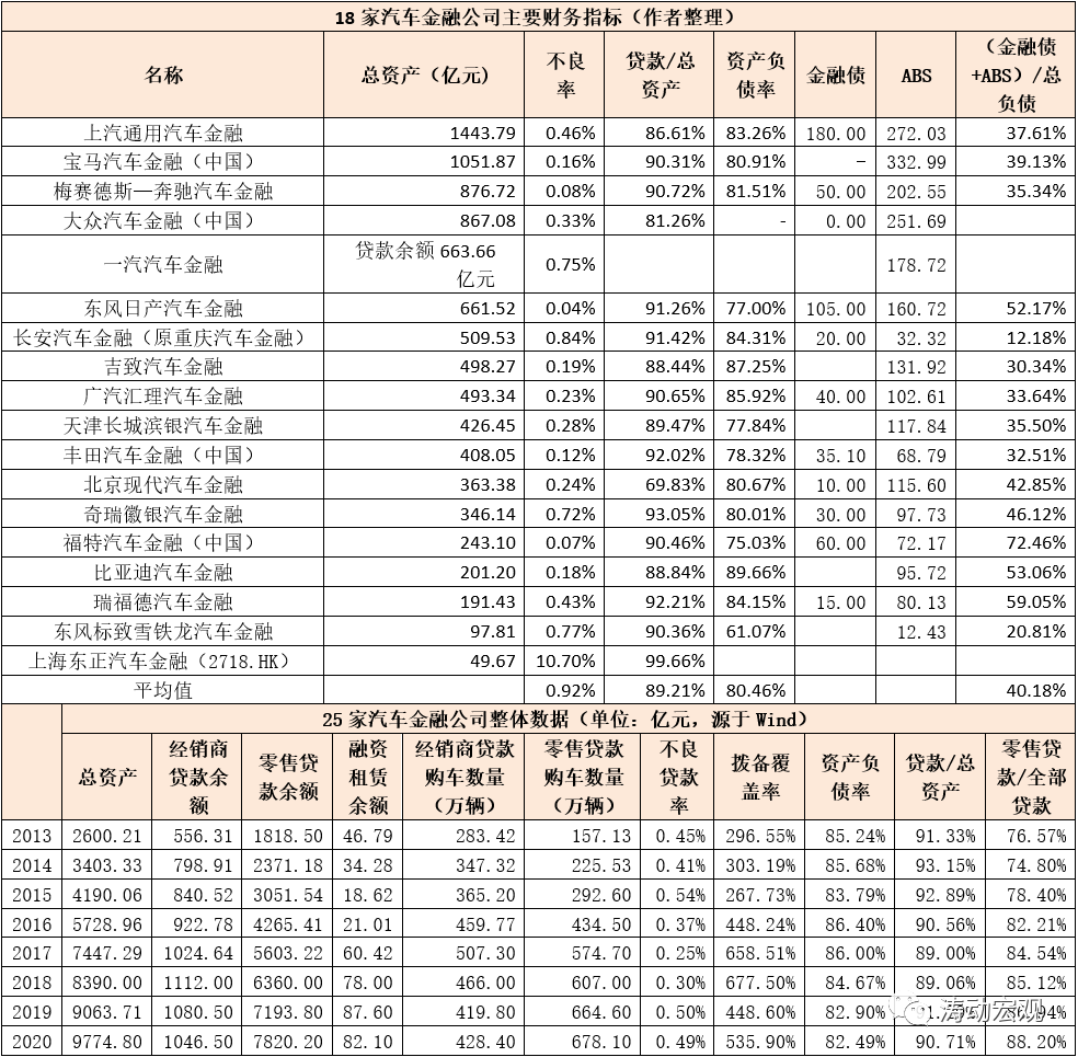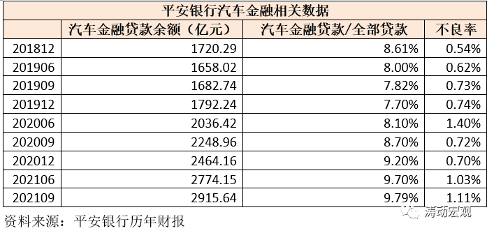 可以看出,和平安銀行1%左右的汽車金融貸款不良率相比,汽車金融公司的貸款質量表現還可以。