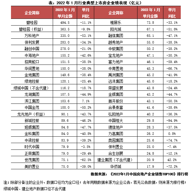 01 合約銷售 1月開局慘淡百強房企業績同比降低近4成