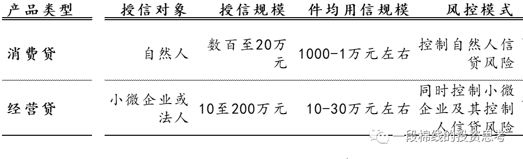 零售信貸機構的風控邏輯和對公信貸業務存在根本性不同,即前述提及的“不是追求絕對風險水平最低,而是在經營特定客群的信貸業務時追求風險成本表現盡量穩定”。