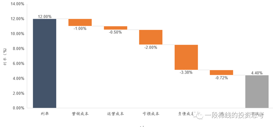 在這一商業模式下,風險成本控制對經營機構來說只是獲得利潤最大化的手段而非目的。零售信貸機構對風險成本的管理主要體現為盡量控制年化風險成本表現穩定,非追求年化不良率的絕對水平最低。
