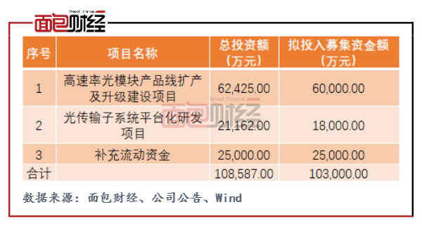 高速率光模塊產品線擴產及升級建設項目擬投入募集資金6億元,是此次募投的主要項目。該目建成后,可形成新增高速率光收發模塊年產110萬支的生產能力,較2020年公司光收發模塊產量增長逾75%,建設周期為2年。