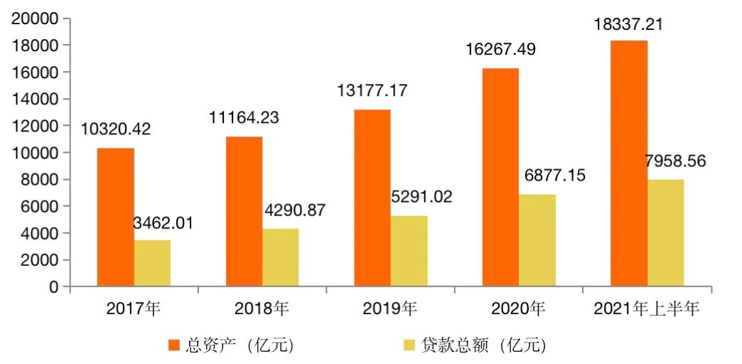 統(tǒng)計(jì)數(shù)據(jù)顯示,寧波銀行的資產(chǎn)規(guī)模從2017年的10320.42億元增長至2021年上半年的18337.21億元,增幅達(dá)到近八成。與此同時(shí),貸款總額也從3462.01億元增長至7958.56億元,增幅實(shí)現(xiàn)1.3倍,可見近年來保持穩(wěn)健的增長態(tài)勢。