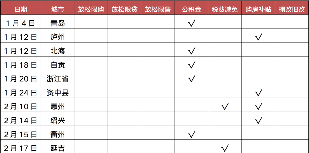 但核心一、二線城市限購政策較難全面退出,政策層面集中在人才落戶、降低非戶籍家庭社保年限要求,刺激剛需的購房需求釋放。