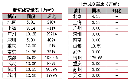 二線城市:除重慶、長沙外成交維持低位運行以外,其他二線城市成交基本都呈現探底回升走勢,環比漲幅超過100%。