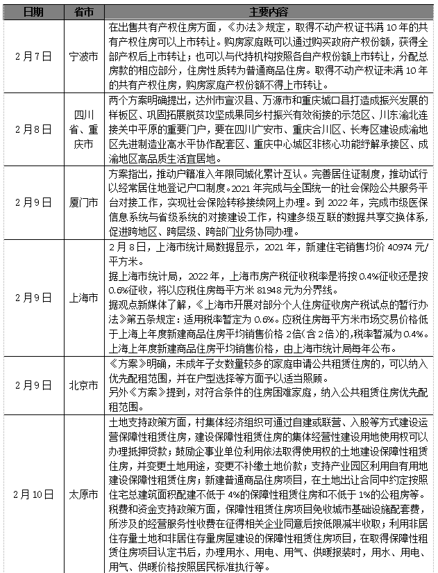 地方層面,寧波出臺《共有產權房管理辦法》,規定共有產權房取得不動產權證滿10年可以上市轉讓。廣州、惠州住建部門否認政策松綁,廣州未設置房價紅線,目前限價政策并未放松,惠州大亞灣所謂“樓市新政”目前僅是征求意見稿,并非最終文件。廈門發改委發布《關于廈門市建設高標準市場體系行動方案》,提到將推動戶籍準入年限同城化累計互認,完善居住證制度,推動試行以經常居住地登記戶口制度。